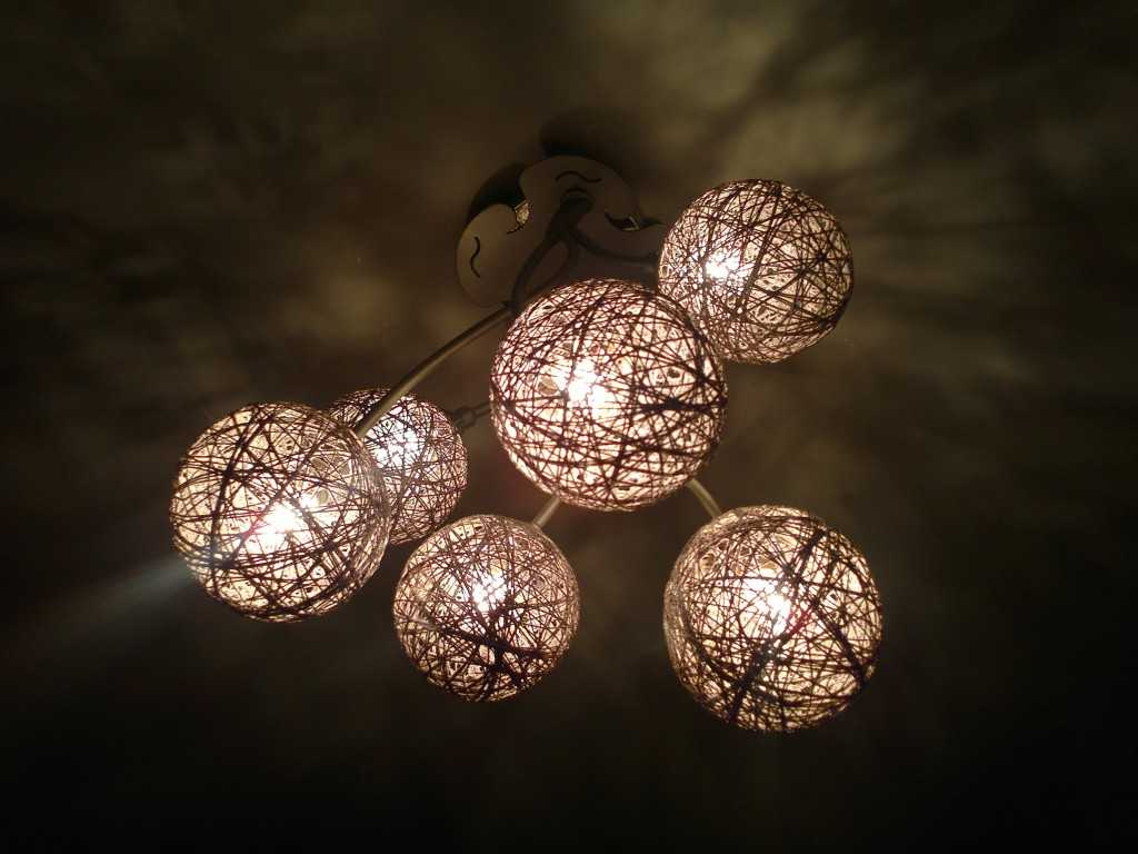 Существует множество вариантов изготовления плафонов из нитей. Такой способ декора в последние годы приобрел большую популярность. Например, в качестве основы можно взять шарик, нанести на него клей ВХ и обмотать нитями. Затем шарик лопаем и вытаскиваем.