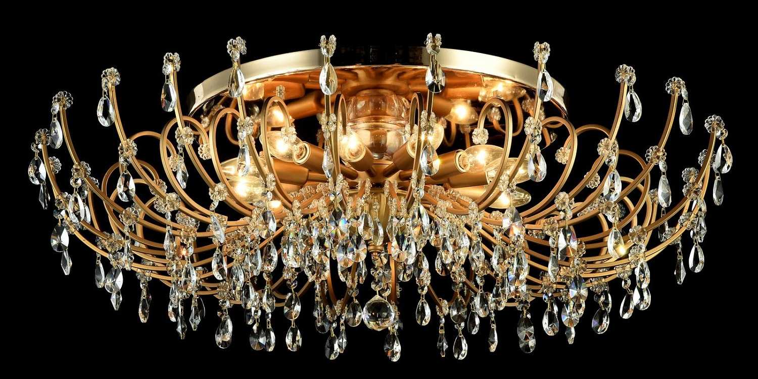 Не забывайте, что в классическом понимании хрустальная люстра – это подвесная модель с несколькими рядами подвесок. Прежде, чем покупать такое изделие, оцените высоту потолков в помещении и убедитесь, что вы не будете цеплять кристаллы головой или руками. Потолочные люстры отличаются более компактной конструкцией, они напоминают по форме тарелку и прижаты к потолку. Это отличный вариант для тех, кто хочет наслаждаться бликами хрусталя, но не располагает высокими потолками.
