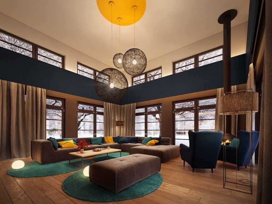Дизайнерское оформление зала в коттеджеИсточник bookshunt.ru/