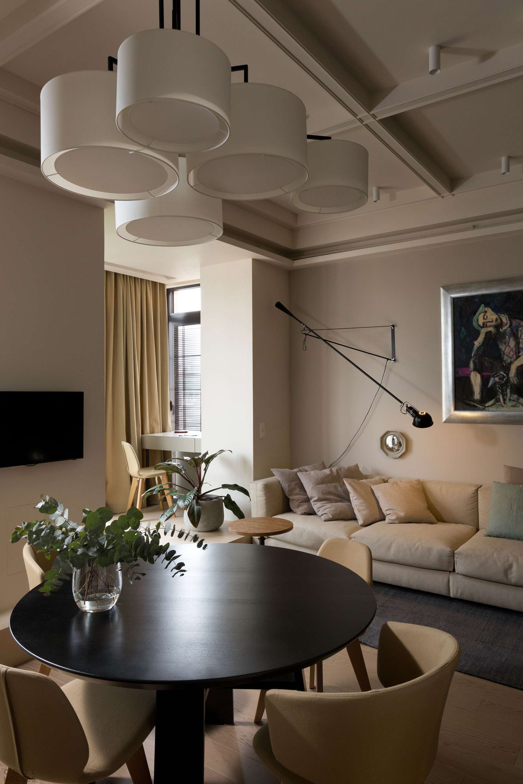 Люстра нейтральной формы, неброская и не выделяющаяся в общем интерьере, будет просто выполнять свои практические функции. Это неплохое решение также для временных вариантов, если предполагается скоро полностью изменить внешний вид комнаты.
