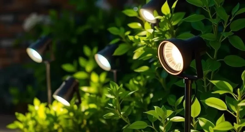 - Прожекторы: для подсветки деревьев, кустарников