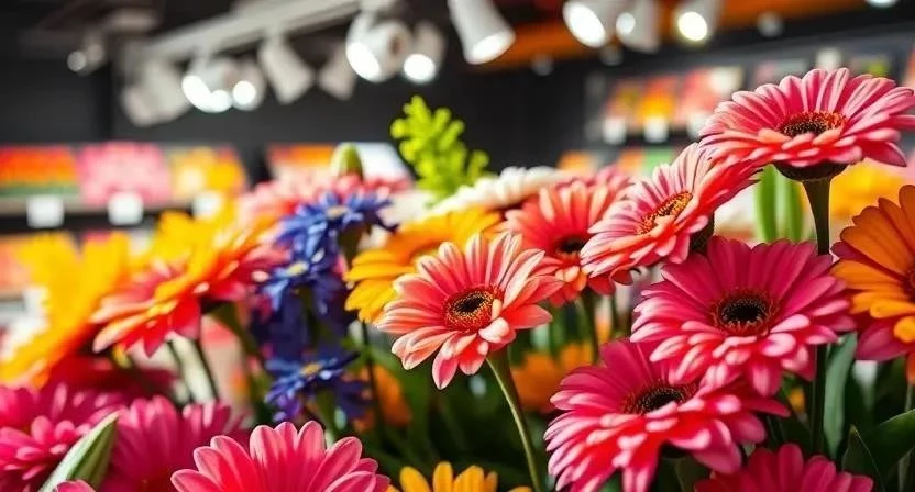 Ответ: Используйте точечное освещение для выделения отдельных букетов и общее освещение для равномерного освещения всего помещения.