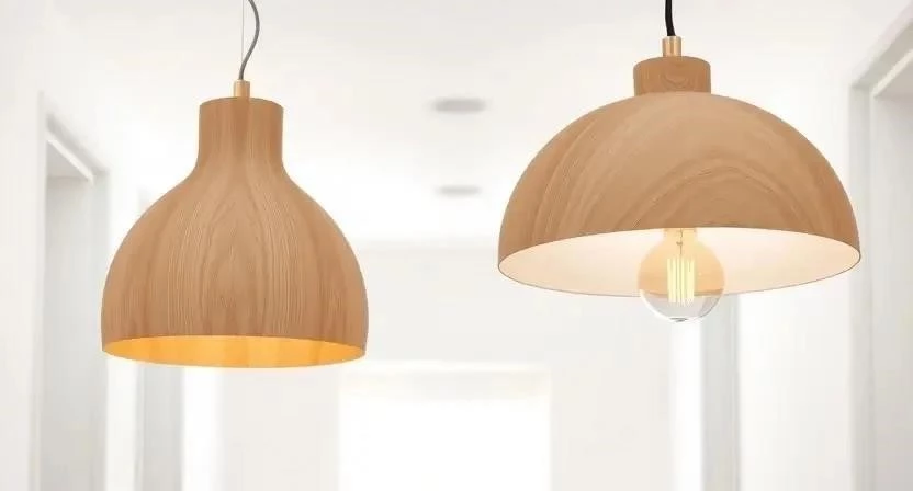 - Дерево: Это один из самых характерных материалов для сканди-стиля. Деревянные светильники привносят тепло, уют и связь с природой. Часто используются светлые породы дерева, такие как береза, сосна или ясень. Они могут быть как полностью деревянными, так и иметь деревянные элементы в сочетании с металлом или стеклом. Мой любимый светильник в прихожей имеет деревянный абажур, и он отлично дополняет общую картину.