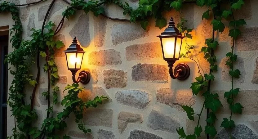 Для создания освещения в стиле прованс подойдут различные виды светильников. Фонари – это классика жанра, особенно кованые, с элементами растительного орнамента. Бра, установленные на стенах дома или беседки, добавят романтичности. Гирлянды, украшенные маленькими лампочками, создадут праздничное настроение. Свечи, расставленные в красивых подсвечниках, подчеркнут атмосферу уюта. Уличные люстры, выполненные в стиле прованс, станут изюминкой вашего сада.