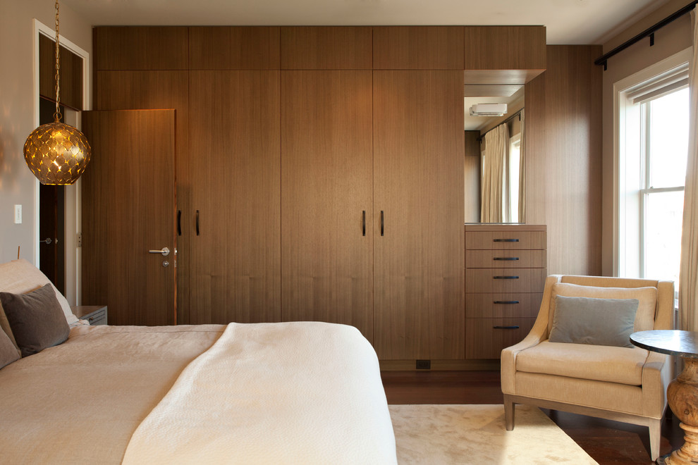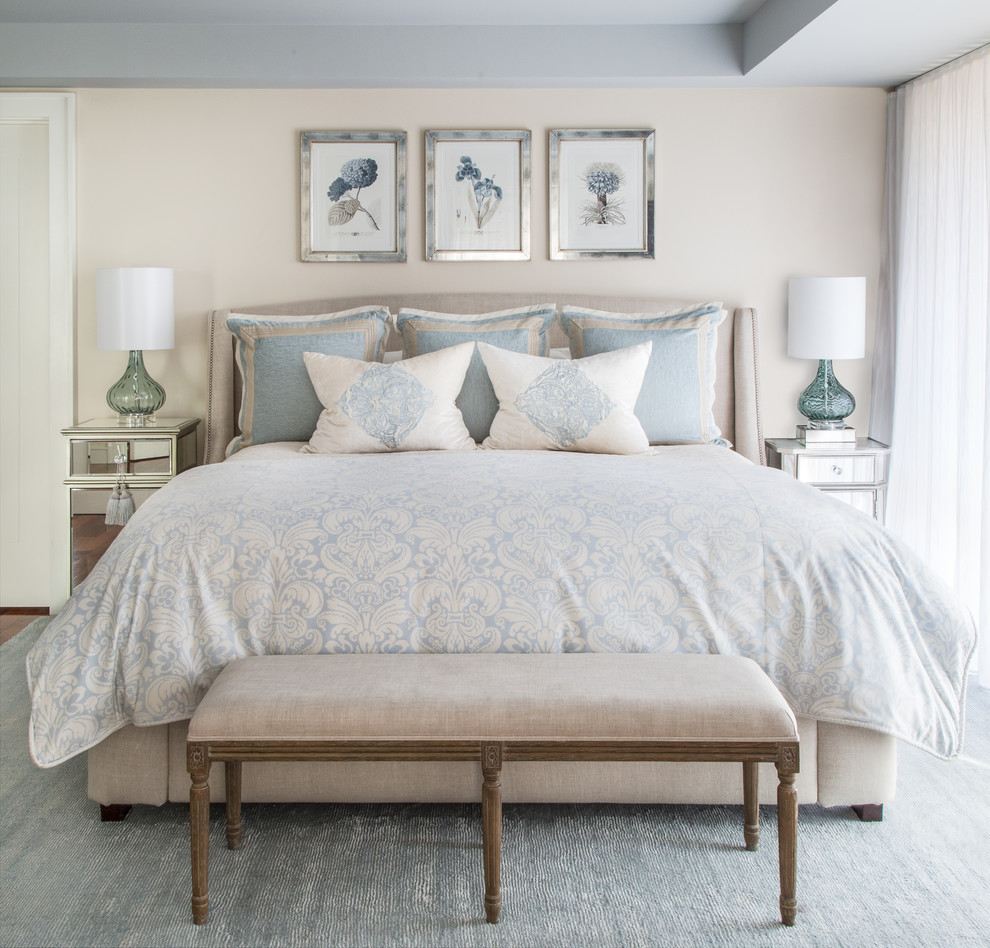 Уютная спальня, оформленная в бежевых тонах