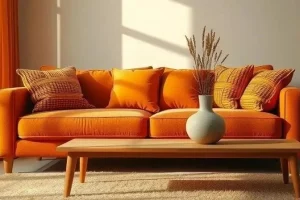 - Оранжевый торшер поддержит ретро или современный стиль комнаты.