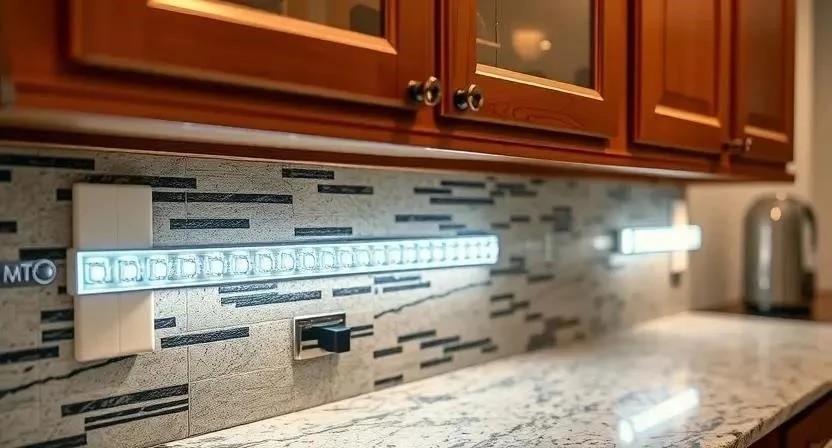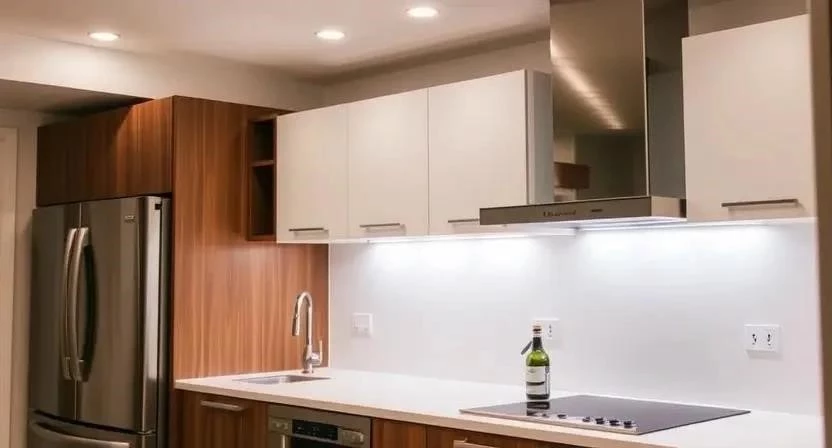 Подключение светодиодной ленты под шкафчиками – отличный способ добавить акцентное освещение на кухне. Для этого потребуется светодиодная лента, блок питания и контроллер (если вы хотите управлять цветом и яркостью). Ленту можно приклеить к нижней части шкафчиков или закрепить с помощью специальных клипс. Блок питания необходимо установить в безопасном месте, защищенном от влаги и пыли. Контроллер позволяет создавать различные световые сценарии и управлять цветом и яркостью ленты.