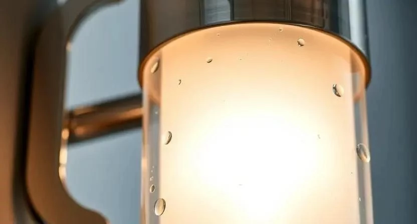Это значит, что нарушена герметичность. Нужно заменить уплотнитель или купить светильники для ванной с более высоким IP.