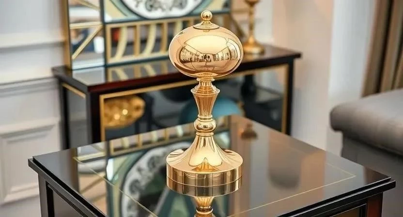 Латунь – это удивительный сплав меди и цинка, известный человечеству с глубокой древности. Его история насчитывает тысячелетия, и на протяжении веков латунь ценилась за свою красоту, податливость и прочность. Процесс изготовления зеркальной латуни включает тщательную полировку поверхности до достижения идеального, почти зеркального блеска. Это придает материалу уникальное свойство отражать свет и создавать игру бликов, которая оживляет пространство. В отличие от холодного хрома или кричащего золота, латунь излучает мягкое, теплое сияние, которое воспринимается как нечто уютное и благородное. Она словно светится изнутри, особенно при грамотном освещении, и обладает хамелеонской природой: может выглядеть винтажно с патиной или современно в полированном варианте.