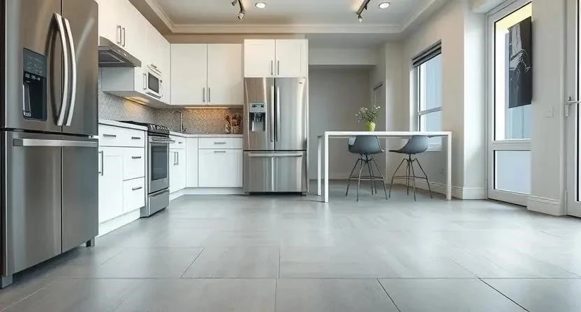 Как выбрать цвет напольного покрытия для кухни? Для кухни лучше использовать практичные и устойчивые к загрязнениям цвета, такие как серый, коричневый и бежевый.