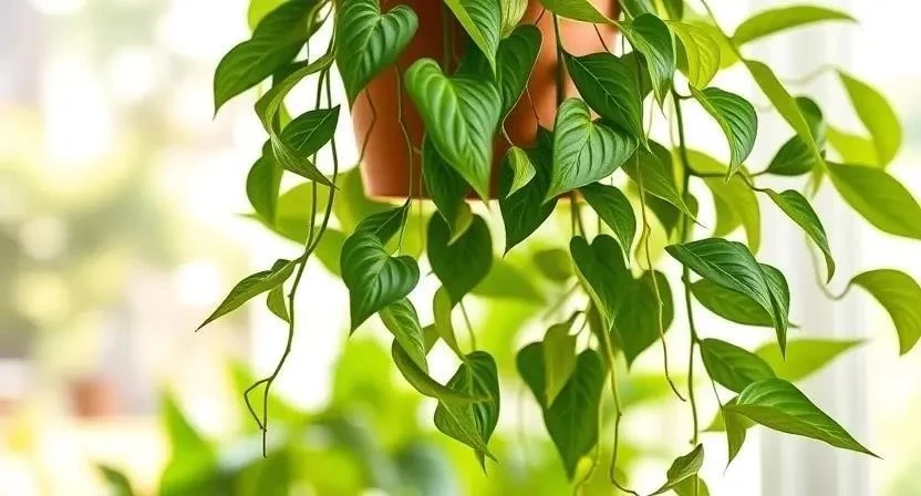- Эпипремнум золотистый (золотой потос): Неприхотливое растение, которое хорошо очищает воздух и легко размножается.