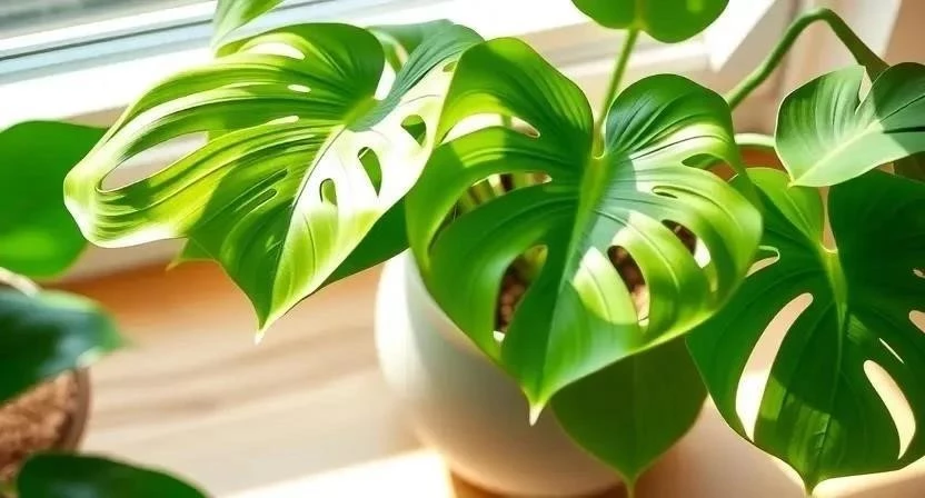- Монстера Делициоза. Популярное растение с резными листьями, которое требует опоры и регулярного полива. Уровень сложности: средний.