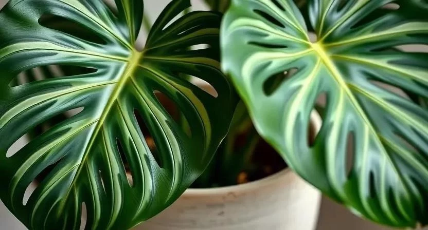 - Монстера: Крупное растение с резными листьями, которое создает тропическую атмосферу. Требует много места и влаги.