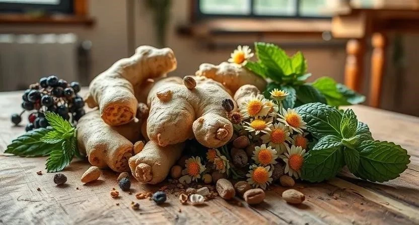 - Имбирь: Обладает противовоспалительными и антиоксидантными свойствами. Добавлять в чай, супы или использовать в виде компрессов.