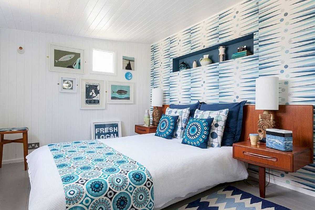 Маленькая спальня в скандинавском стиле также может быть оформлена оригинально и модно. Максимум уюта для души получится добиться именно в такой комнате. Так можно подчеркнуть любовь и уважение народов Скандинавии к морю. Это стильно и просто в исполнении. В качестве декоративных элементов стоит применить панно с морскими судами, пепельницы из стекла и яркие подушки в полоску.