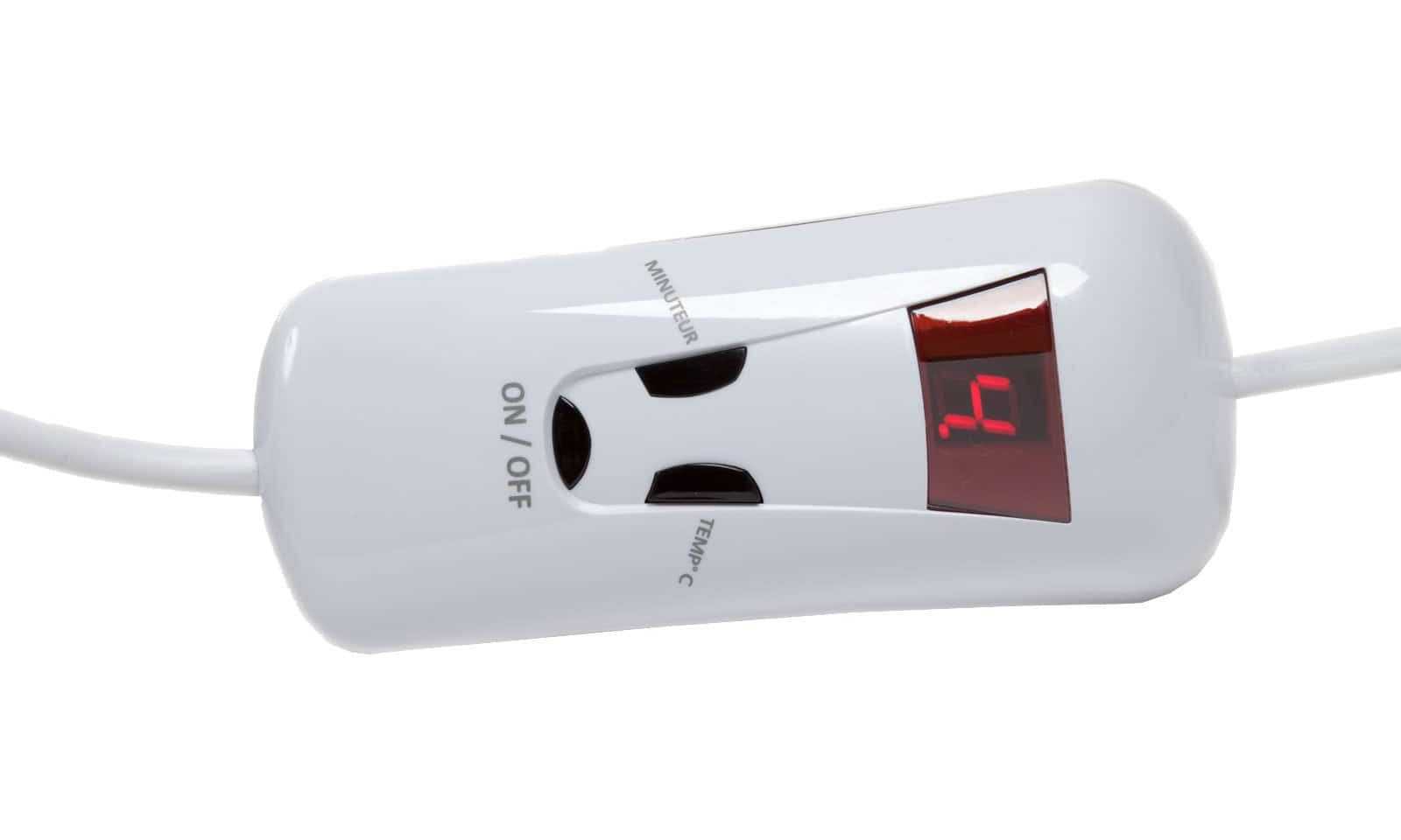 Базовое устройство и принцип работы его просты. Нагревательный элемент – провода из углеродного волокна, помещены в изолированный чехол (хлопковый или искусственная ткань), и подведены к сетевому кабелю. Двойная изоляция нагревательного элемента обеспечивается еще стеклонитью и силиконом, которым покрыты провода. Перегрева не будет из-за встроенных электронных датчиков. Конструкция снабжена регулятором мощности и управляющим блоком. Последний содержит кнопки запуска, отключения, температурные режимы (их может быть от 2 до 9) и автоматический таймер отключения. Съемный сетевой кабель обеспечивает стирку изделия.