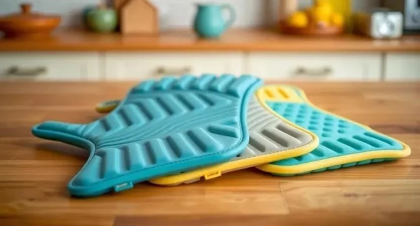- Силиконовые прихватки: Изготовлены из термостойкого силикона. Обладают высокой устойчивостью к высоким температурам, легко моются и не впитывают запахи.