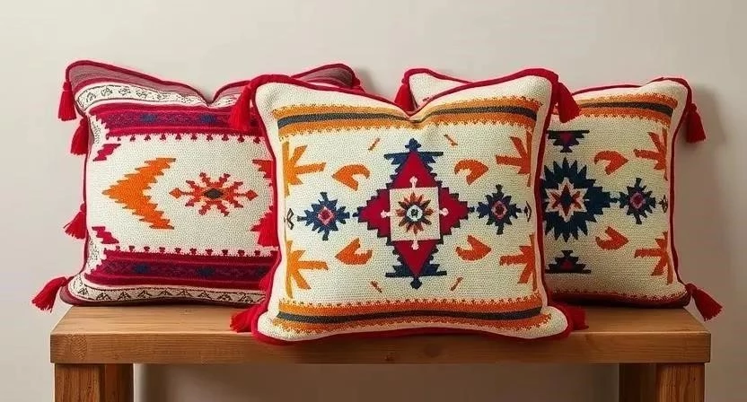 - Прямоугольные подушки (30×50 см): Подходят для дивана и кресла, обеспечивают поддержку спины.