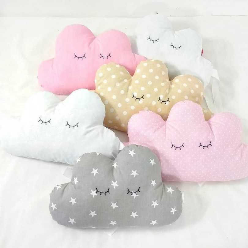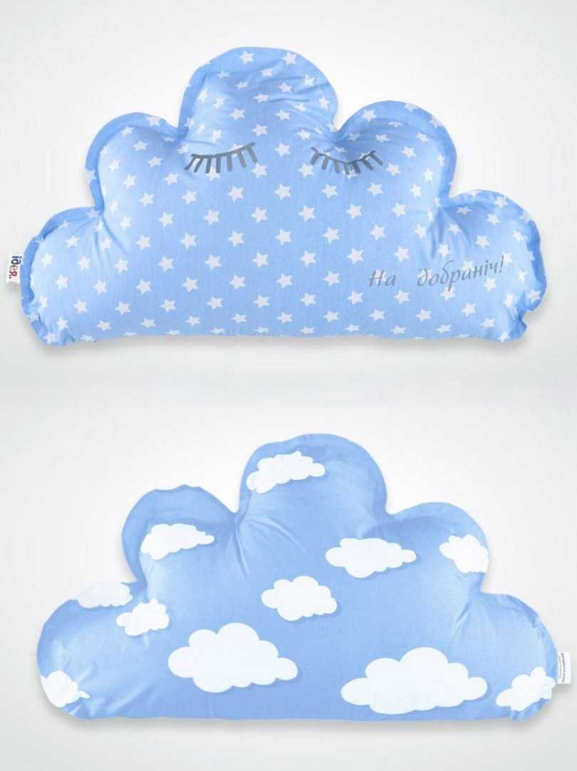 Подушка в форме облачка может стать милым и мягким элементом бортика детской кроватки. Для его изготовления понадобится: