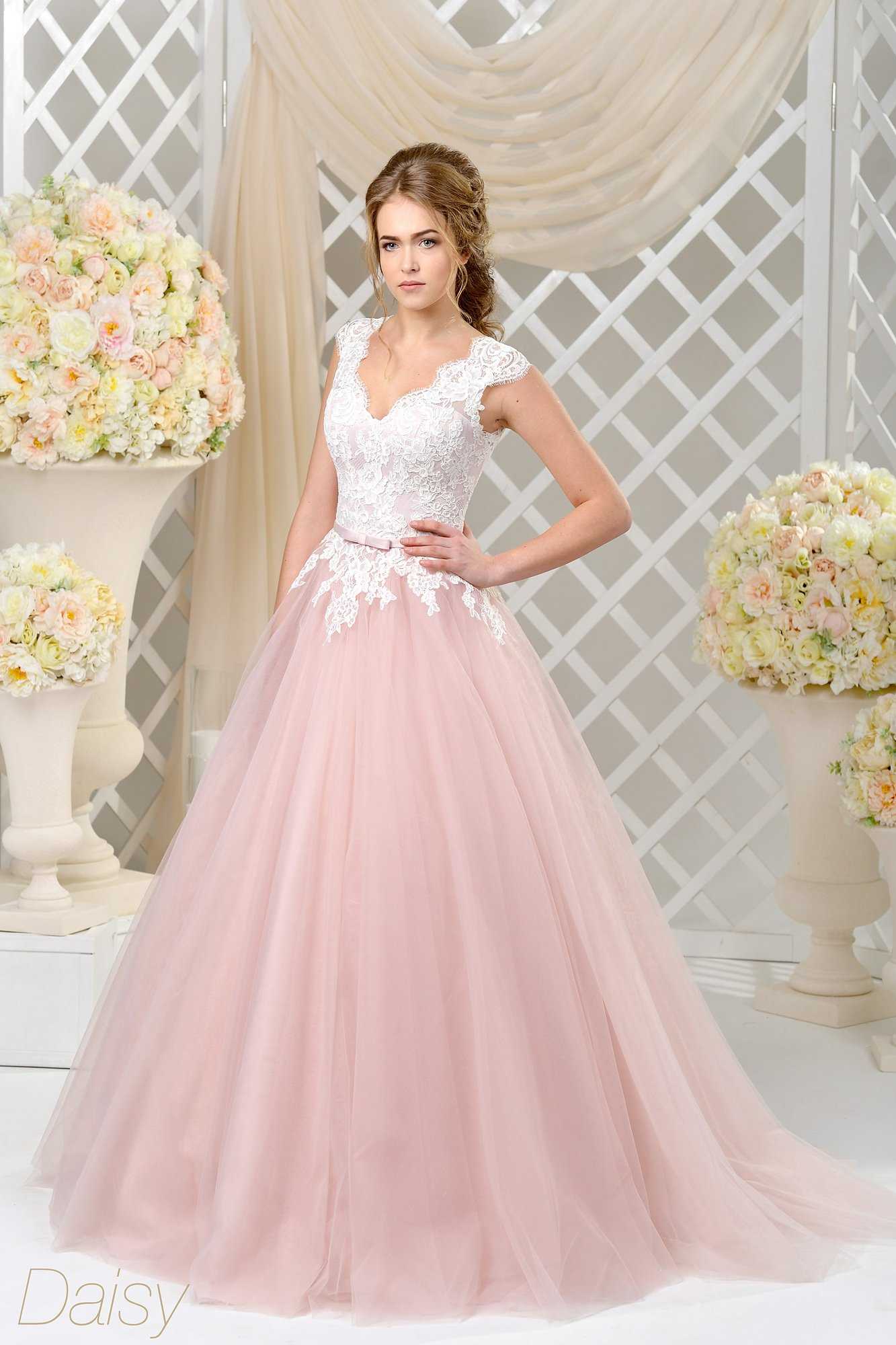 Светло-розовый — классический оттенок для свадебного платья. В этом году стилисты советуют вновь вернуться к классике — королевским вариантом выступает классический фасон и гипюром или вышивкой.