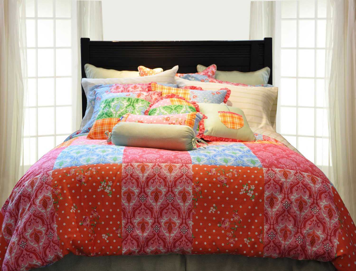 Одеяла и принадлежности не обязательно всегда совпадают друг с другом по тону. Яркий акцент создан уже благодаря самому изделию.