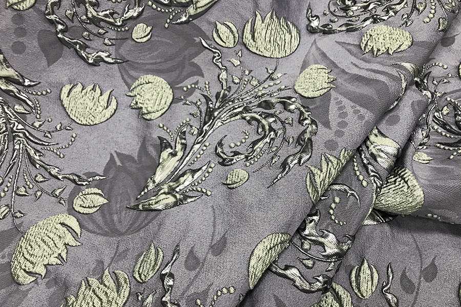 - жаккард — плетенье дает объем за счет цветных переливов. Ткань – сверкающая, уплотненная, жестковатая, фактурная, декоративная;