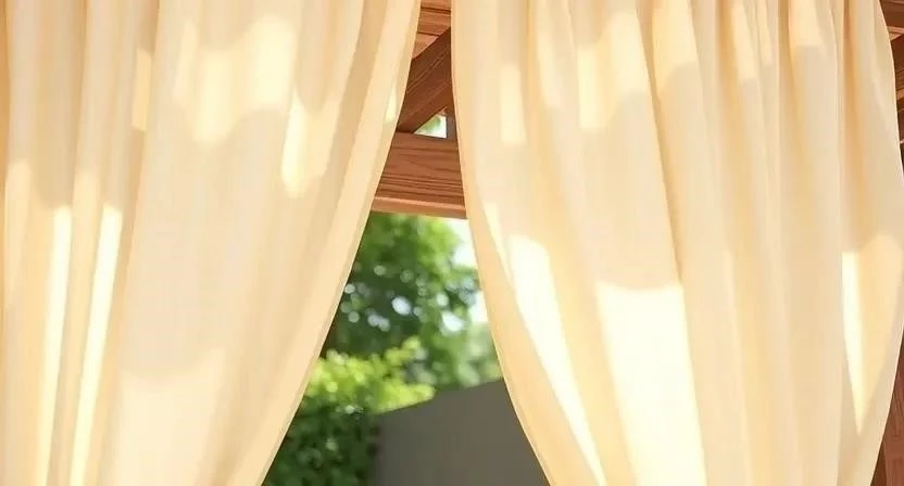 Ответ: Выбирайте цвет штор, который гармонирует с цветом беседки и окружающим ландшафтом.
