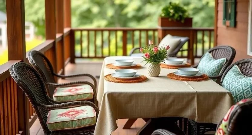 - Скатерти и салфетки – придают столу на веранде или в беседке нарядный вид.