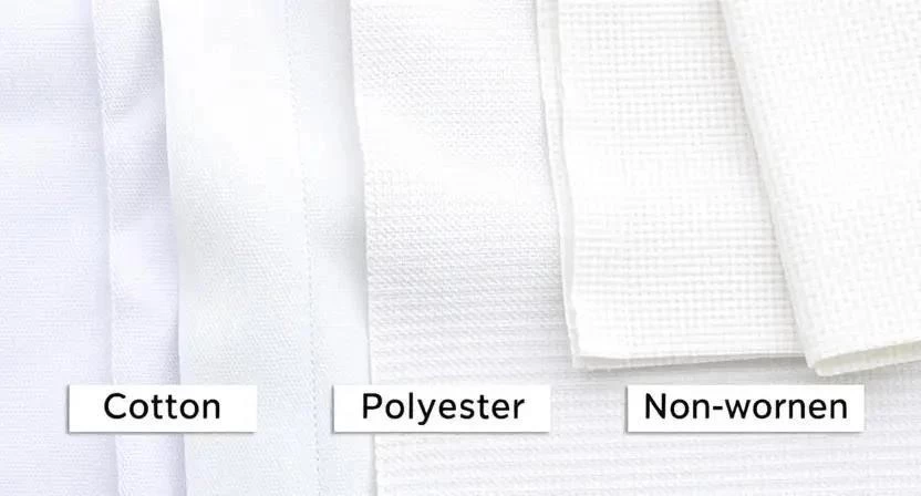 Ответ: Хлопок, полиэстер, смесовые ткани и нетканые материалы – выбор зависит от области применения и бюджета.