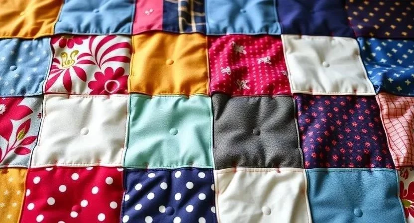 - Пэчворк: Соединение лоскутков ткани в узорчатое полотно.