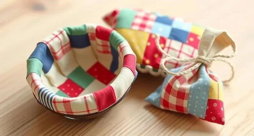 - Мисочки из ткани: Отличный способ утилизировать небольшие обрезки ткани.