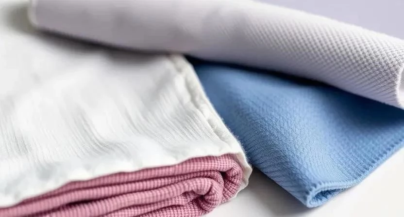 - Микрофибра: Синтетический материал, обладает высокой впитывающей способностью, быстро сохнет, не деформируется и устойчив к износу. Микрофибра также обладает антибактериальными свойствами.