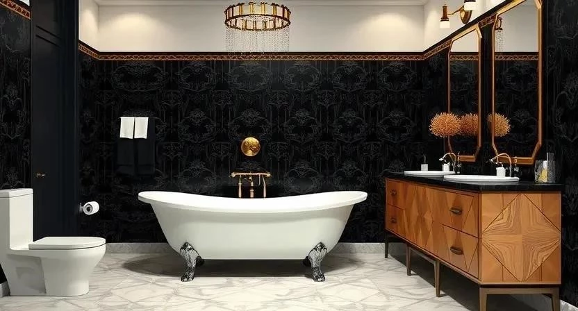 Спальня: В спальне в стиле арт-деко преобладают темные и насыщенные цвета, такие как черный, золотой и красный. Мебель должна быть удобной и функциональной. Кровать украшают балдахином и шелковым постельным бельем. На стенах можно повесить картины в золотых рамах. Гостиная: В гостиной в стиле арт-деко можно использовать более светлые тона, такие как бежевый и кремовый. Мебель расставляют симметрично, создавая ощущение порядка и гармонии. В центре комнаты можно поставить журнальный столик из стекла и металла. Кухня: В кухне в стиле арт-деко используются глянцевые фасады, мраморные столешницы и хромированные детали. Бытовую технику скрывают за фасадами шкафов. Ванная комната: В ванной комнате в стиле арт-деко используются мрамор, керамическая плитка и хромированные смесители. Зеркала украшают рамами с геометрическим рисунком.