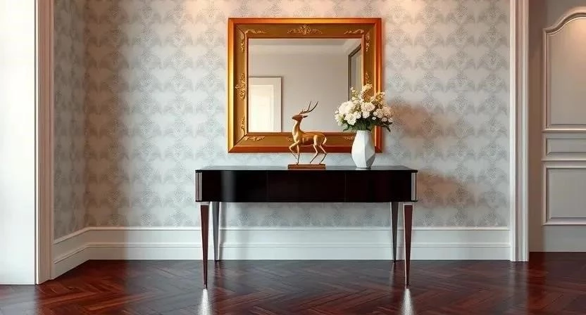 Декор и аксессуары в стиле арт-деко — это те детали, которые придают интерьеру завершенность и индивидуальность. Зеркала, особенно с фацетом или в роскошных рамах, являются неотъемлемой частью стиля, они не только расширяют пространство, но и служат самостоятельным произведением искусства. Вазы из хрусталя, муранского стекла или керамики с геометрическими узорами и металлическими вставками добавляют изысканности. Статуэтки из бронзы, фарфора или слоновой кости, часто изображающие грациозные фигуры или животных, подчеркивают эстетику стиля. Картины в стиле ар-деко или абстрактные полотна в массивных рамах станут яркими акцентами на стенах. Текстиль — подушки, пледы, шторы — с геометрическими узорами, бархатной или шелковой фактурой завершает образ, добавляя уюта и роскоши. Я всегда считал, что декор в арт-деко — это как вишенка на торте. Однажды мы долго искали идеальное зеркало для прихожей, которая плавно переходила в гостиную. В итоге нашли винтажное, с фацетом и в латунной раме, которое стало центральным акцентом и идеально завершило образ, связав два пространства воедино.