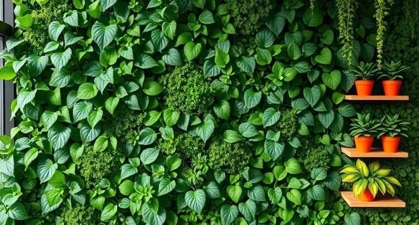 - Фитостены: Конструкции, состоящие из модулей с растениями, которые крепятся к стене.