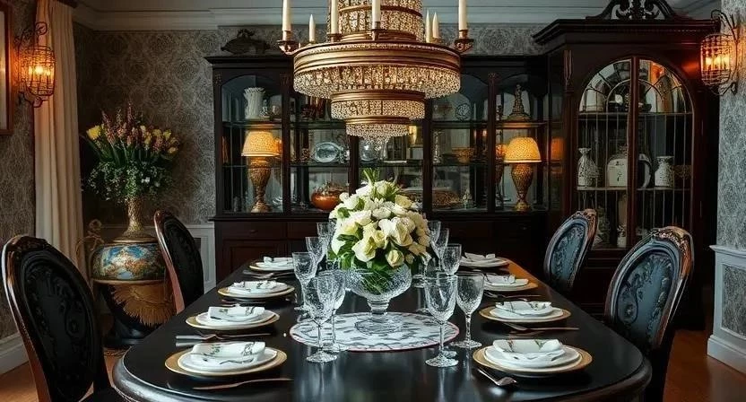 В стиле максимализм можно использовать различные материалы и фактуры: бархат, шелк, дерево, металл, стекло, кожу.