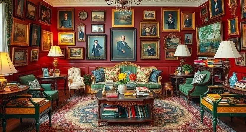 Вопрос: Можно ли сочетать разные стили в интерьере в стиле максимализм? Ответ: Да, это приветствуется.