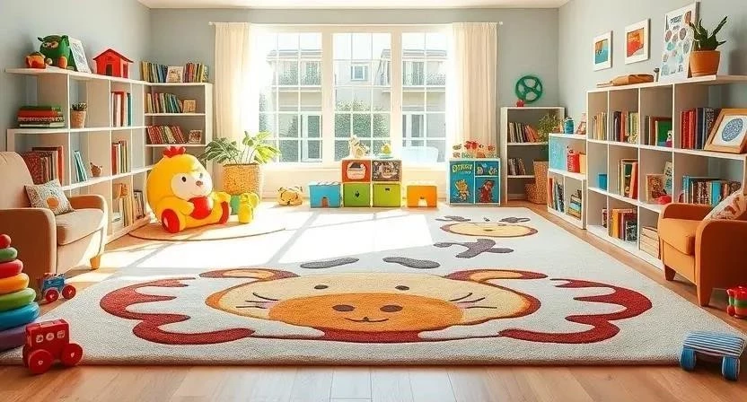 Ответ: Выбирайте ковер, который будет ярким, безопасным и легко чиститься.