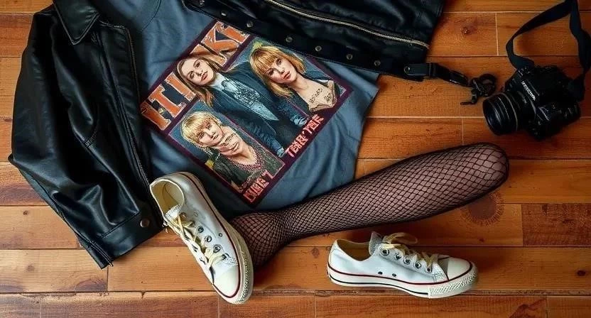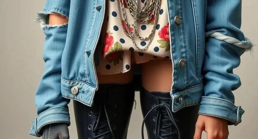 | Indie Sleaze | Винтажные платья, кожаные куртки, яркие колготки | Разнообразные, часто яркие | Деним, кожа, винтажные ткани |