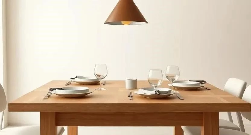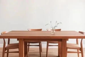 6. Обеденный стол из дерева с простыми стульями.