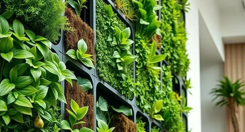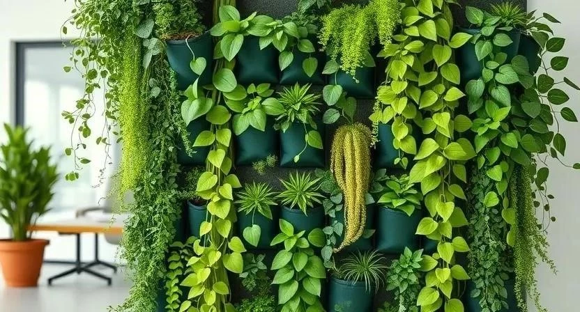 - Модульные системы: Готовые модули с карманами или контейнерами для растений, которые легко монтируются на стену. Это самый простой и быстрый способ создания зеленой стены.