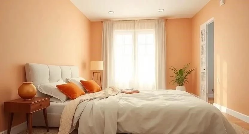 - Какой теплый оттенок лучше всего подходит для спальни? Персиковый или светло-желтый.