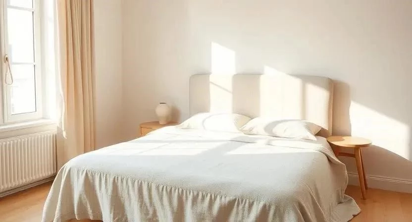 Вопрос 1: Какие цвета лучше всего подходят для спальни в стиле теплого минимализма?