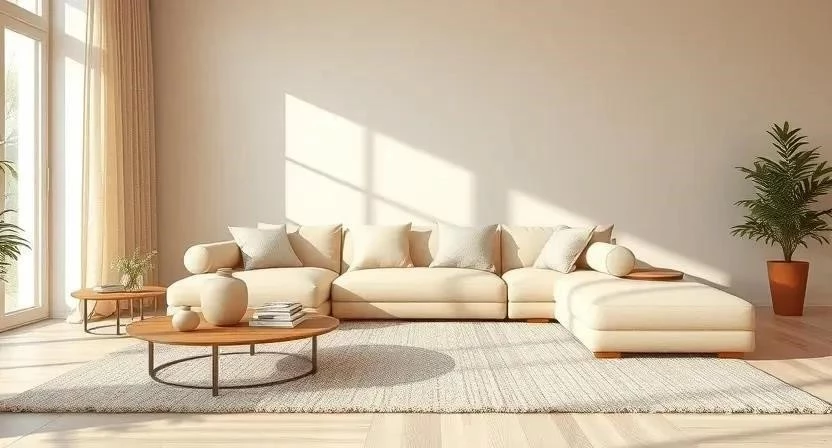 - Гостиная: Используйте бежевый в качестве основного цвета для стен и мебели. Добавьте яркие акценты в виде подушек, штор или картин.