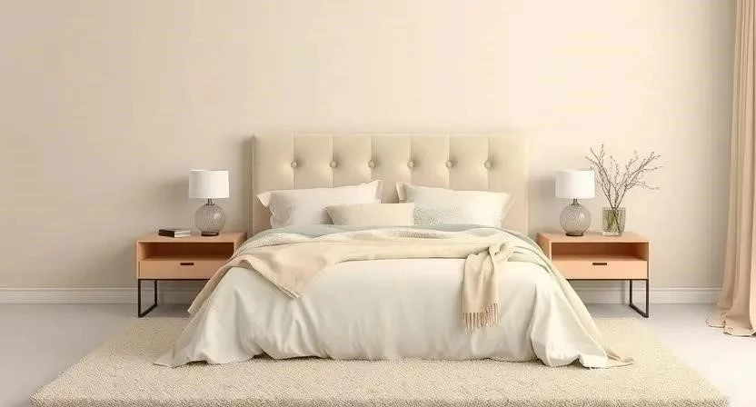 В спальне бежевый цвет создает расслабляющую атмосферу. Используйте светлые оттенки бежевого для стен и постельного белья. Добавьте мягкие текстуры – ковры, пледы, подушки.