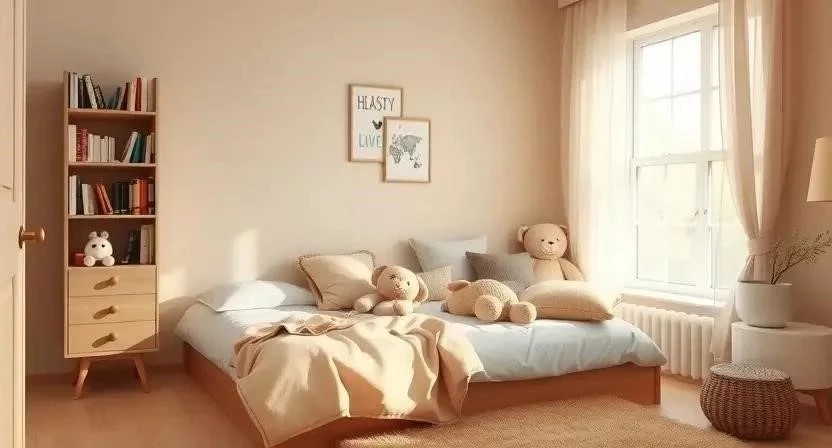 В детской бежевый цвет создает спокойную и безопасную атмосферу. Используйте светлые оттенки бежевого для стен и мебели. Добавьте яркие акценты – игрушки, картины, текстиль.