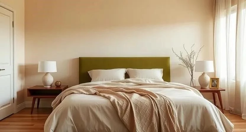 Спальня: В спальне оливковый и бежевый помогут создать спокойную и умиротворяющую обстановку. Стены можно оклеить обоями в бежевых тонах с оливковым рисунком, а постельное белье выбрать в оливковой гамме. Не забудьте про освещение – мягкий, рассеянный свет поможет создать расслабляющую атмосферу.