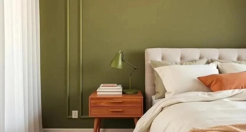 - Спальня: Выберите светлые оттенки оливкового для стен и текстиля.