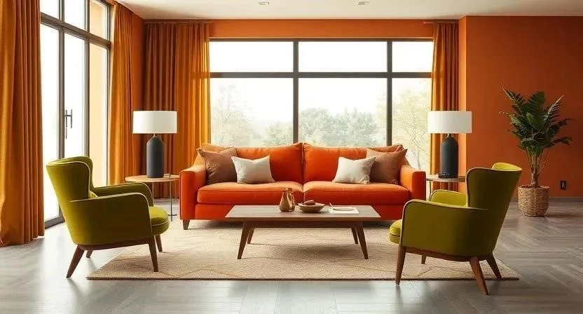 - Оранжево-терракотовый: создает яркий и жизнерадостный интерьер.