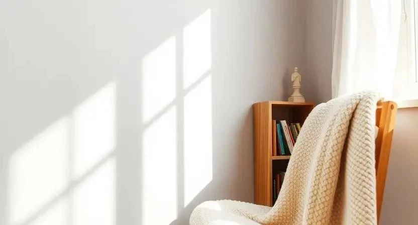 Используйте теплые нейтральные цвета, мягкий текстиль и уютное освещение.